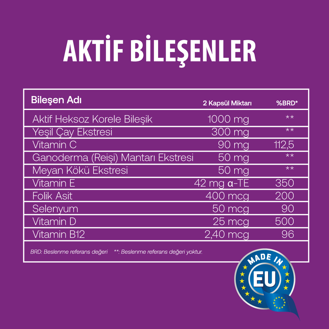 PapiNomore®️ önerilen günlük kullanım miktarı 1000mg Aktif Heksoz Korele Bileşik içermektedir. İçeriğindeki reişi Fransa'dan ithal edilmiştir. Diğer yardımcı bileşenler ise Belçika'dan ithal edilmiştir. ISO 9001, ISO 22000, GMP sertifikalı tesislerde ve üst kalite bileşenler kullanılarak üretilmiştir. Bağışıklık sistemi destek ve yenilikçi mikrobesin takviyesi olan PapiNomore® ana etken ve yardımcı bileşenleriyle yaşam konforunu desteklemektedir.